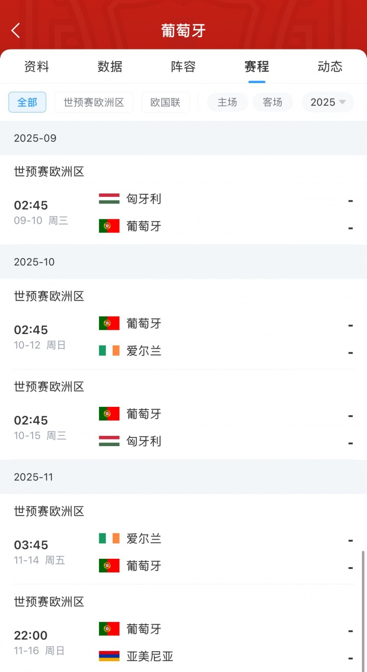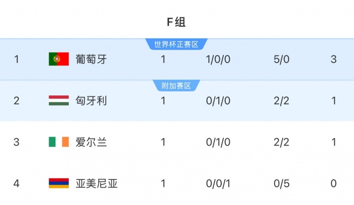 世界杯歐預(yù)賽,F(xiàn)組還剩5場(chǎng)比賽,葡萄牙同組對(duì)手包括匈牙利、愛爾蘭和亞美尼亞。